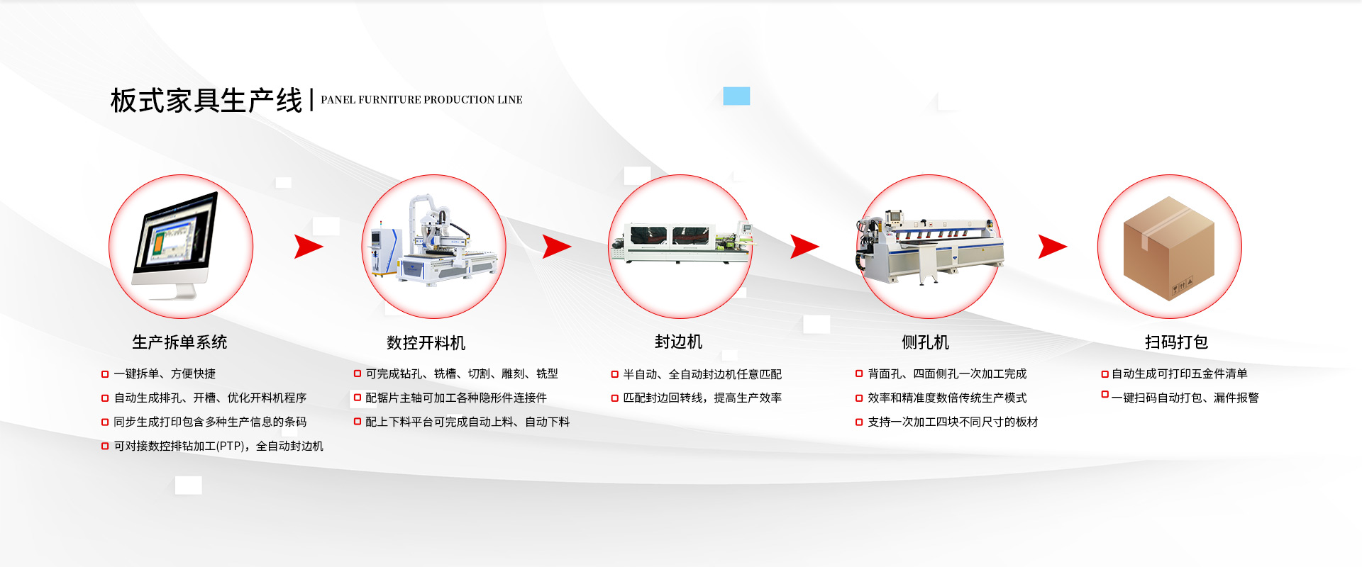全自動(dòng)開(kāi)料機(jī)作為數(shù)控智能化加工設(shè)備,在加工效率提升、加工質(zhì)量提高等方面做出了很大的改變,憑借這些優(yōu)勢(shì),在市場(chǎng)上深受廣大客戶(hù)的喜愛(ài)和歡迎... 閱讀詳情 >>板式家具廠要打造工業(yè)4.0的生產(chǎn)線,就要將開(kāi)料、封邊、鉆孔、分揀、包裝等流程實(shí)現(xiàn)自動(dòng)化、流水化。 >>